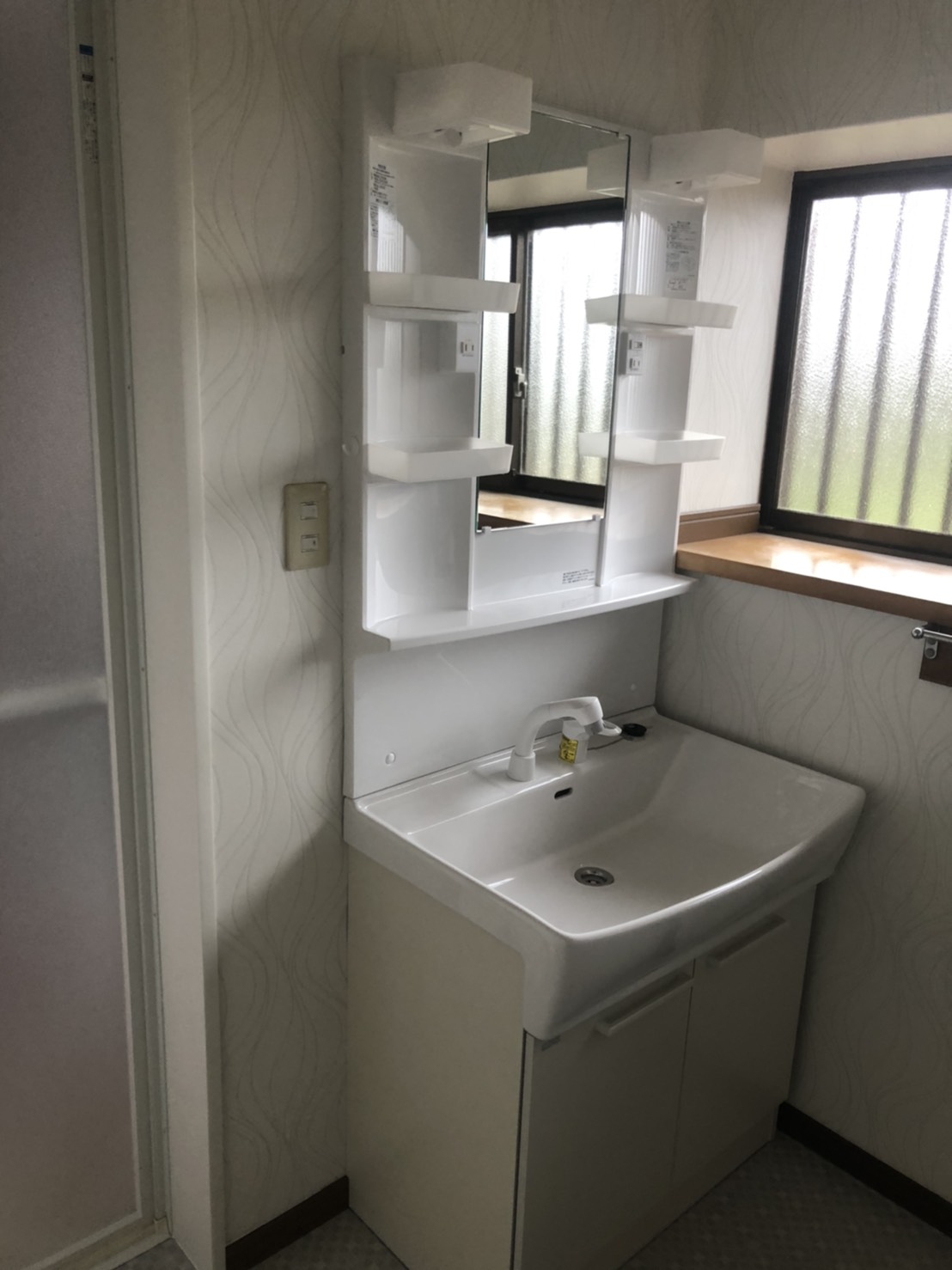 脱衣室の改装、洗面化粧台の入替も同時に行っています。